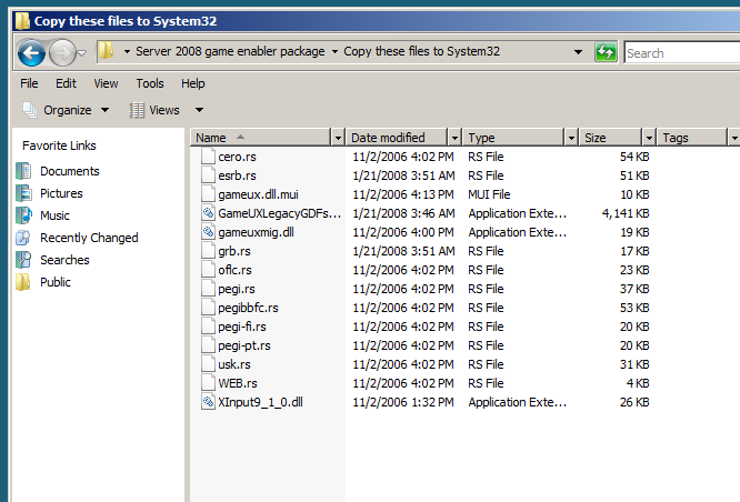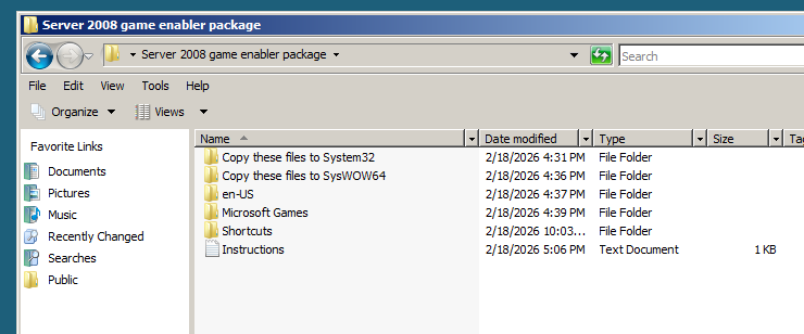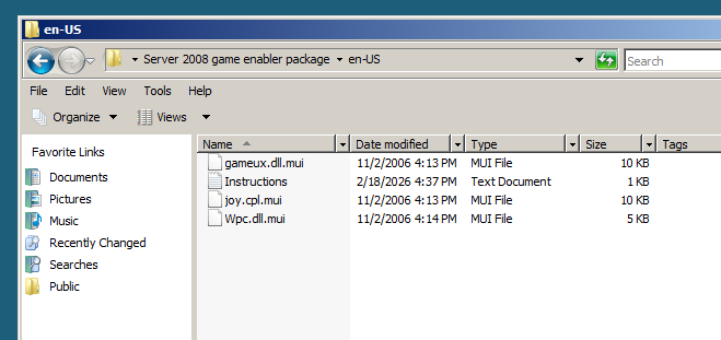To install all of the Windows Vista built-in games, start by opening the Server 2008 game enabler package directory