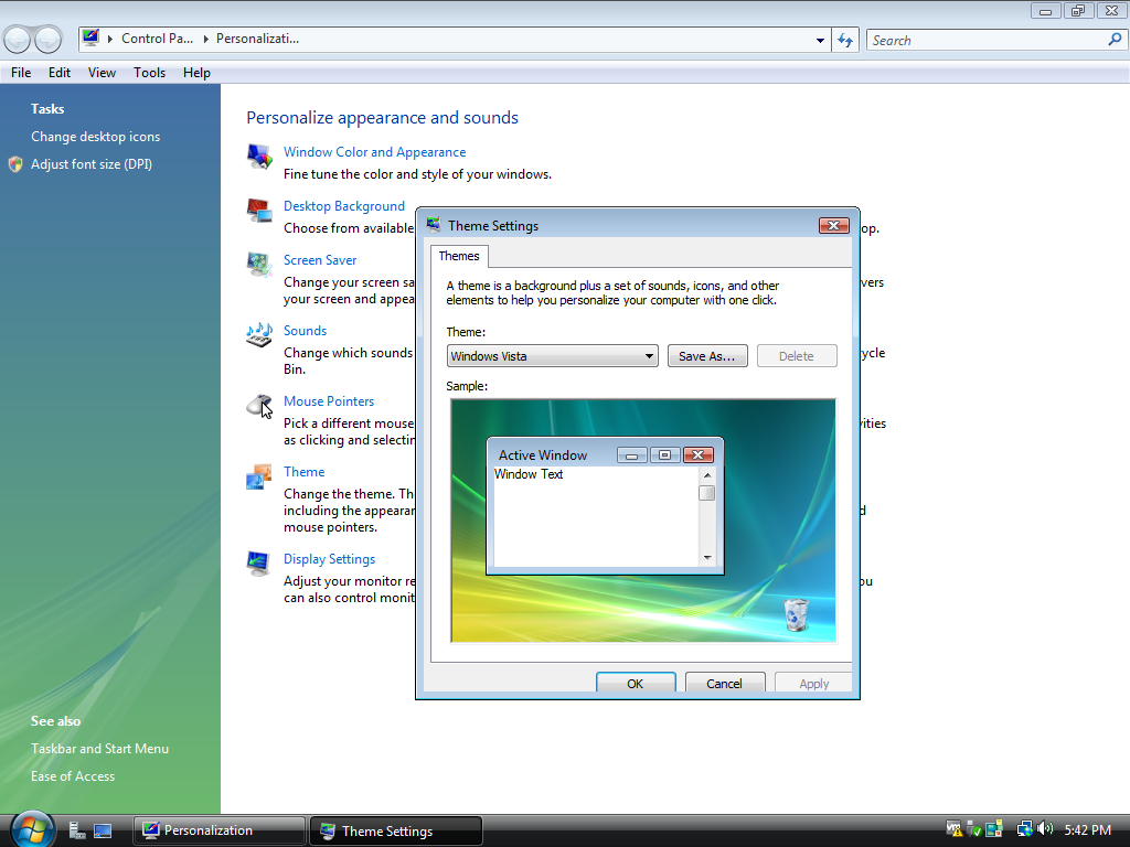 If you wish to use the Aero theme after selecting the Vista theme, go to Window Color and Appearance and select Windows Aero.
