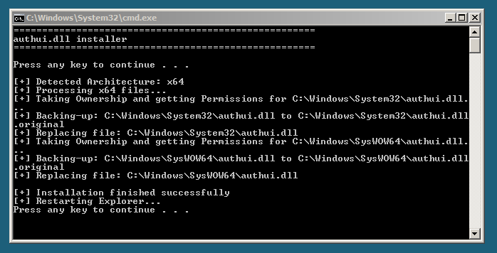 Explorer should close and you'll see this open up, just press "any" key...