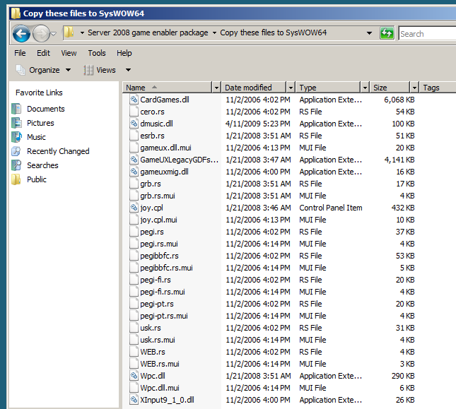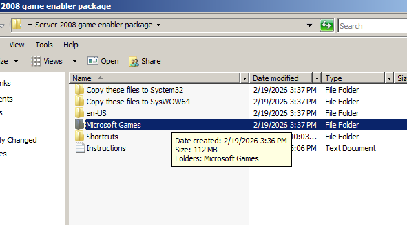 To install all of the Windows Vista built-in games, start by opening the Server 2008 game enabler package directory